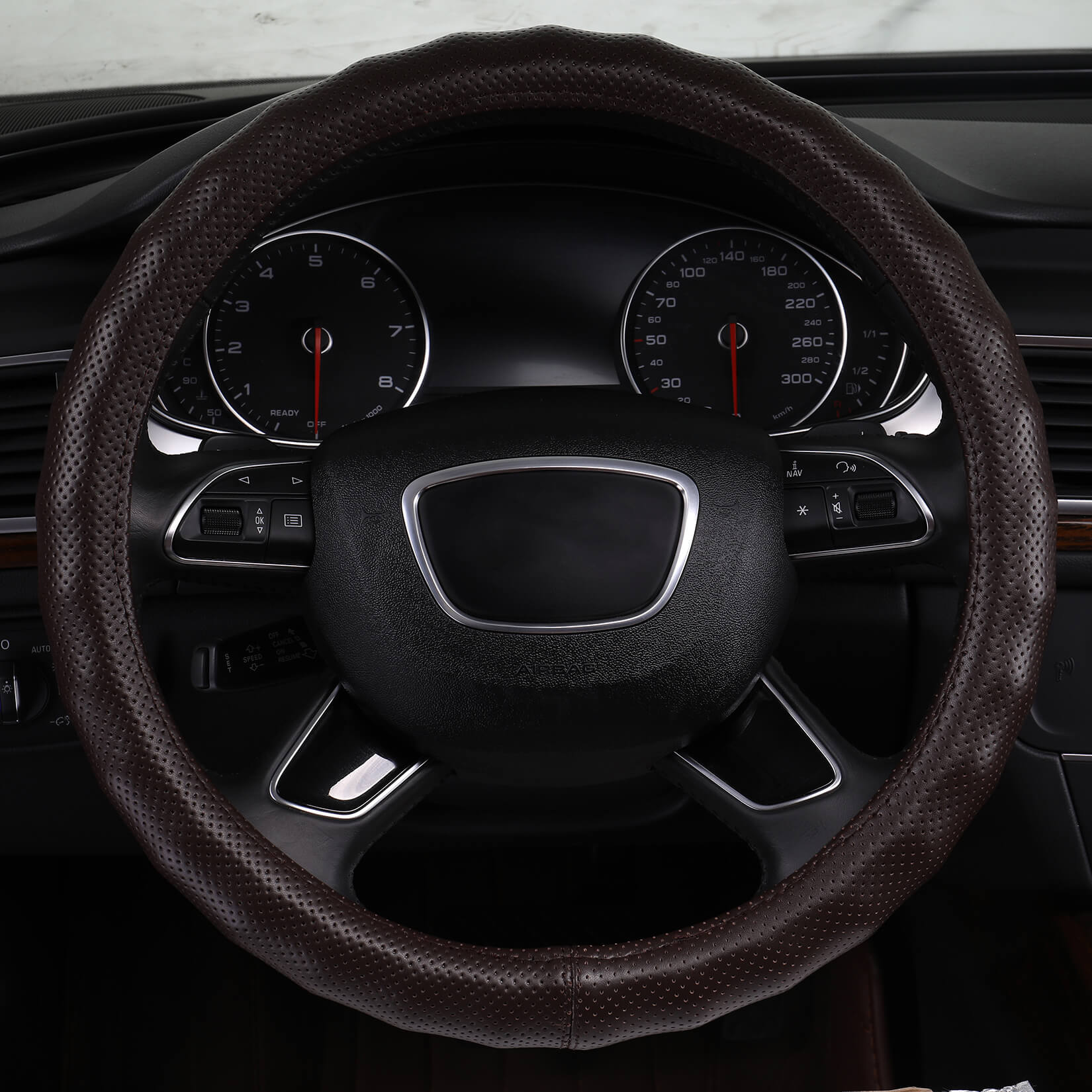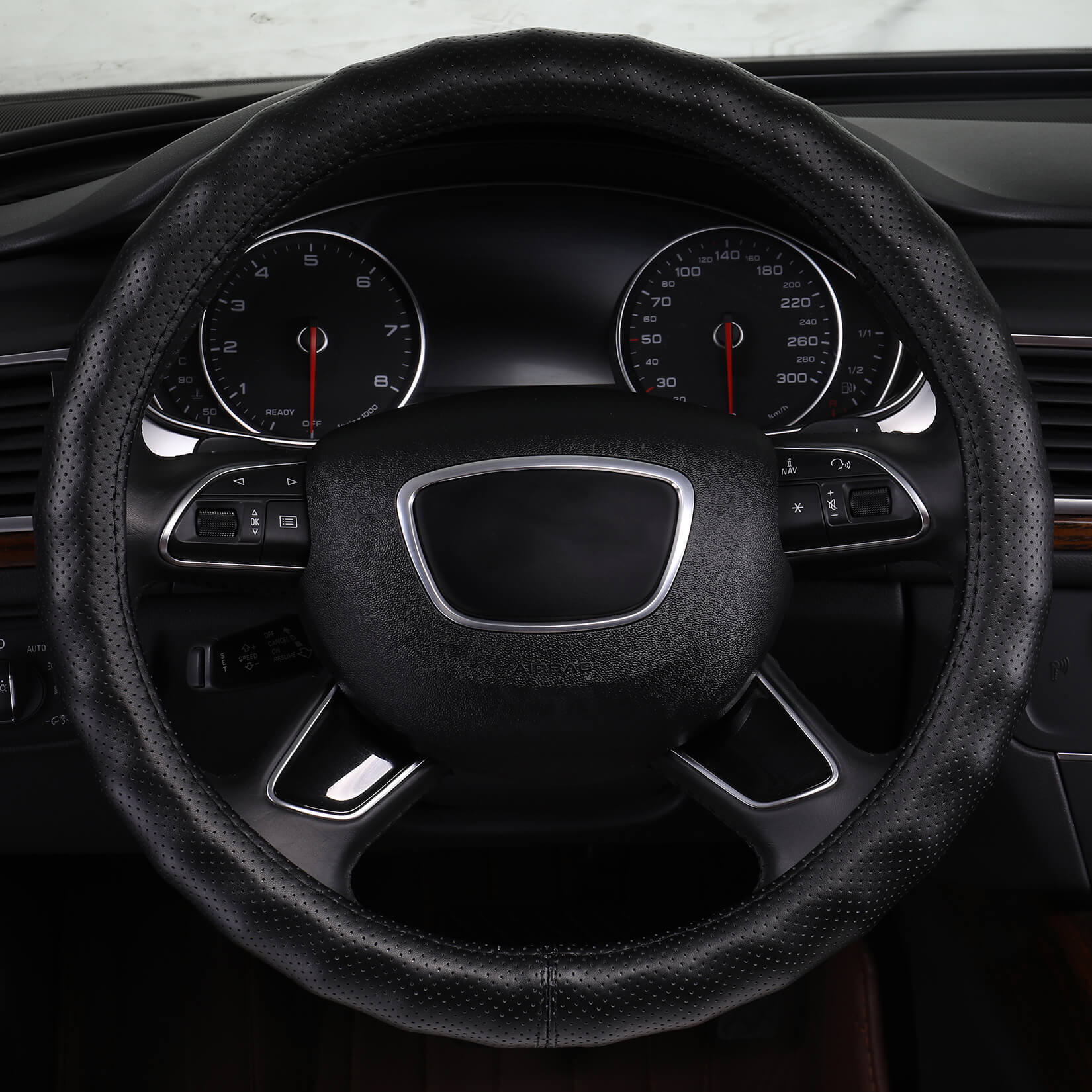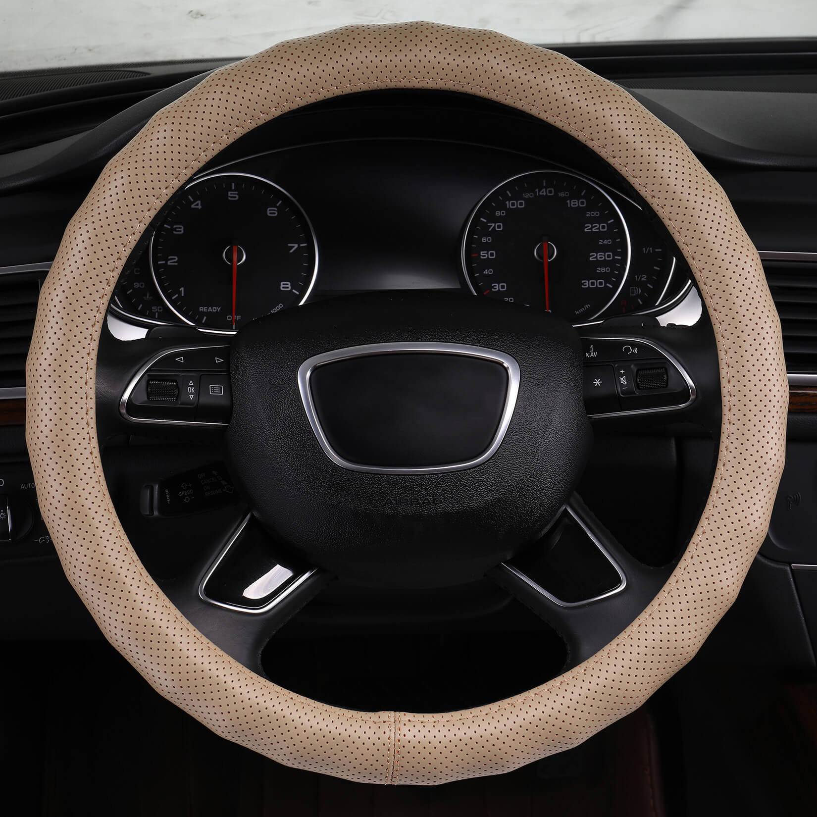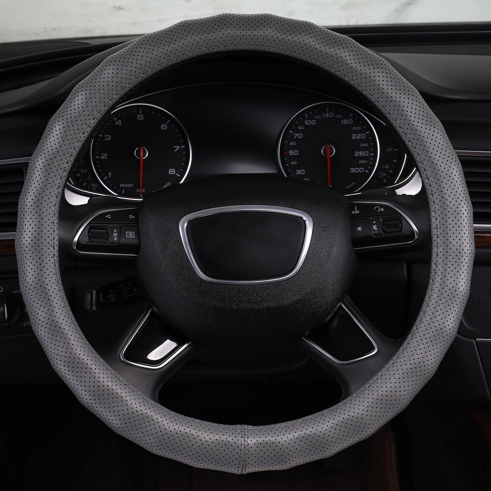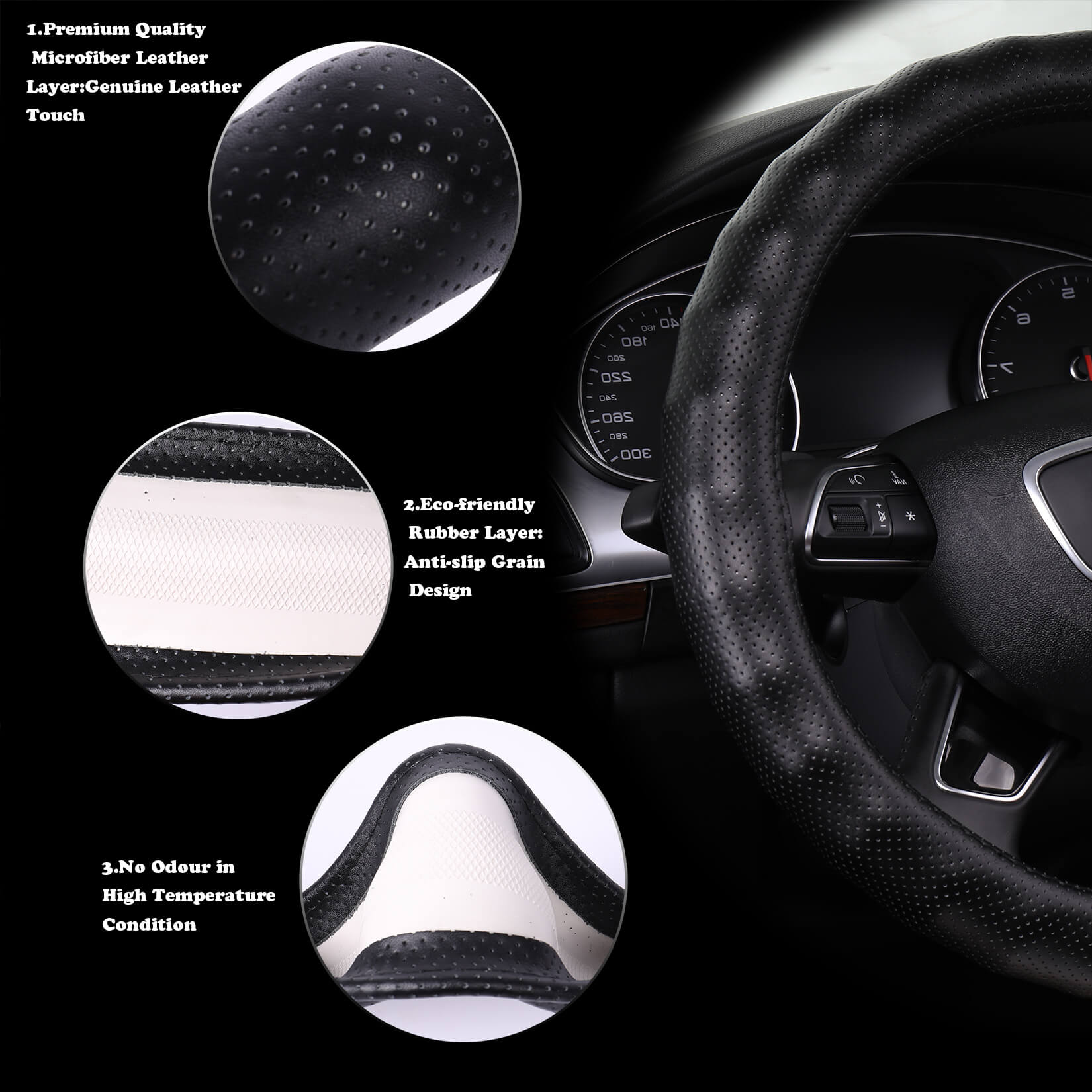 Great Anti-slip:Genuine leather touch improves anti-slip for steering wheel,punching design,absorb sweat on your hands,brings you stronger control feeling when you driving.